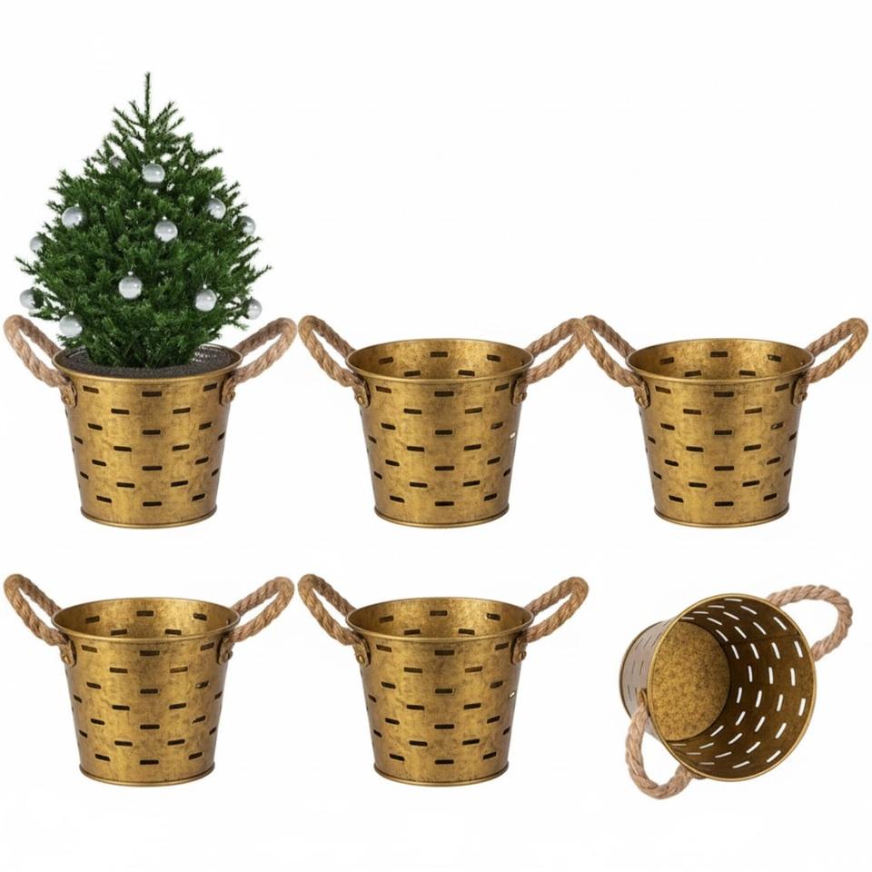 Ensemble de 2 seaux ovales en métal de style vintage avec finition cuivre et poignées en bois pour la décoration de la maison de style campagnard, jardinières