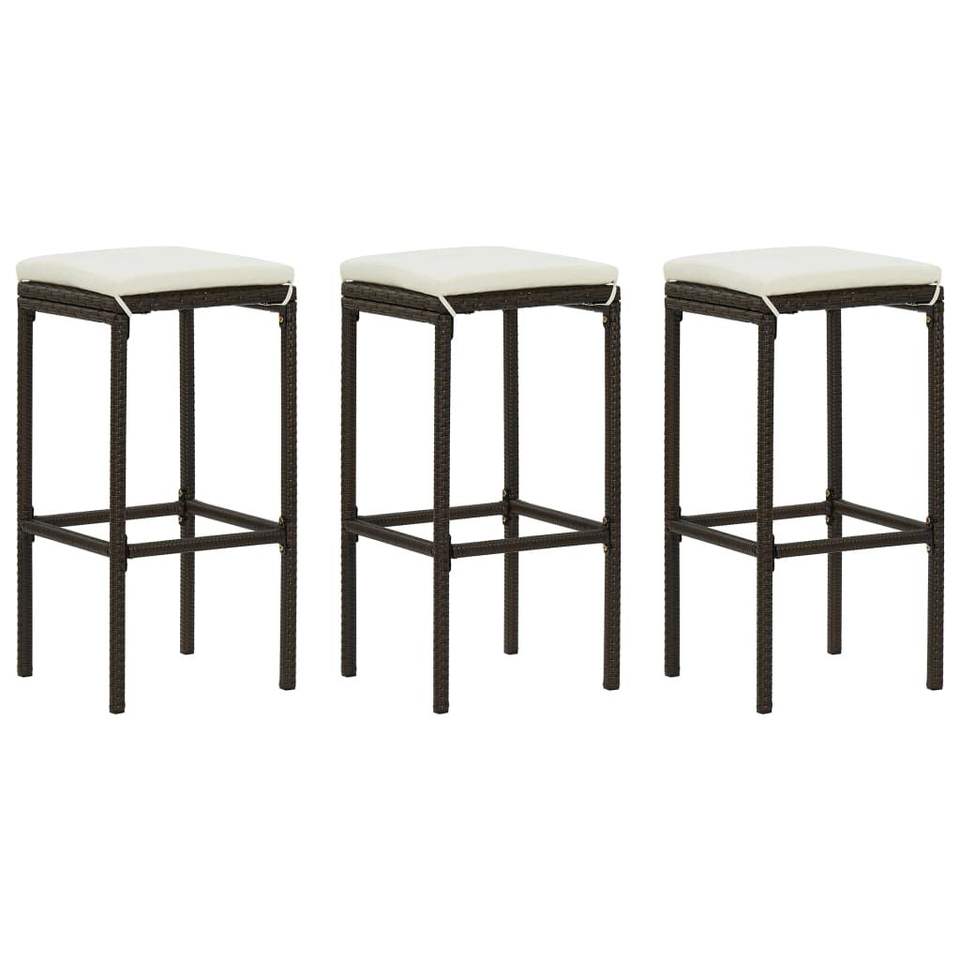 Ensemble de 3 tabourets de bar en rotin brun avec repose-pieds standard pour utilisation en extérieur