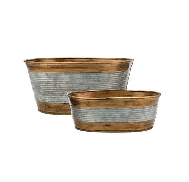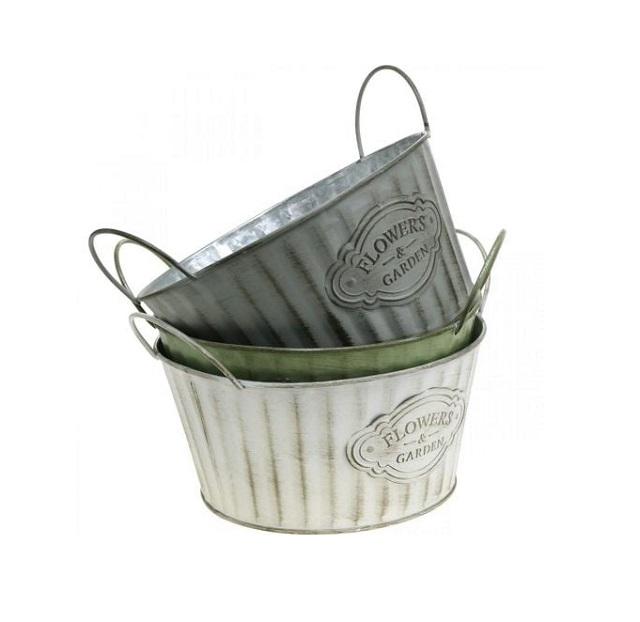 Lot de 3 bacs à fleurs classiques en métal galvanisé avec poignée pour la maison, le jardin et l'extérieur.