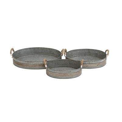 Lot de 3 plateaux alimentaires galvanisés de différentes tailles Plateaux alimentaires en métal de forme ovale de conception standard Solution de stockage de service parfaite