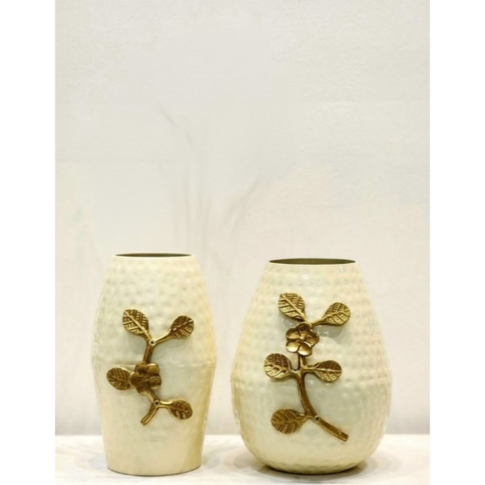Ensemble de 3 vases de sol en métal fer forgé finition cuivre décoratifs faits à la main pour le salon, articles de décoration artisanale pour la maison en solde