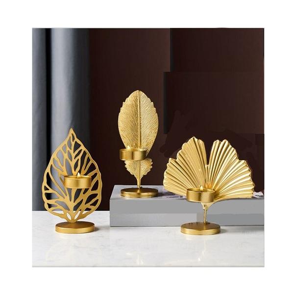 Ensemble de 3 bougeoirs en forme de feuille, couleur or, en laiton, design tendance, taille personnalisée