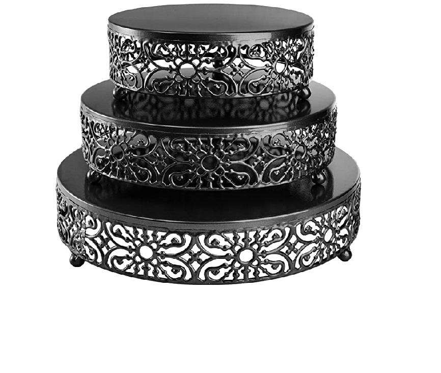 Ensemble de 3 supports de service à gâteaux en métal noir, finition Antique, tasse ronde en métal, support de serveur de gâteaux aux fruits, support de gâteau Design fait à la main