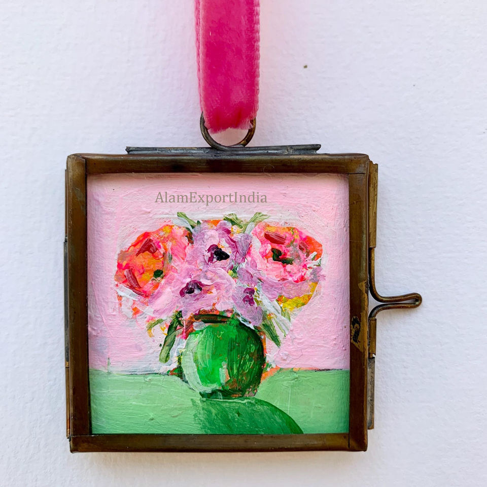 Ensemble de 3 pièces, dernier produit, cadre photo miniature en verre transparent de forme carrée, ruban décoratif, décoration murale, cadre photo antique