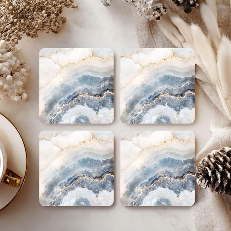 Ensemble de 4 sous-verres en marbre bleu gris, motif géode neutre, décoration de table, sous-verres