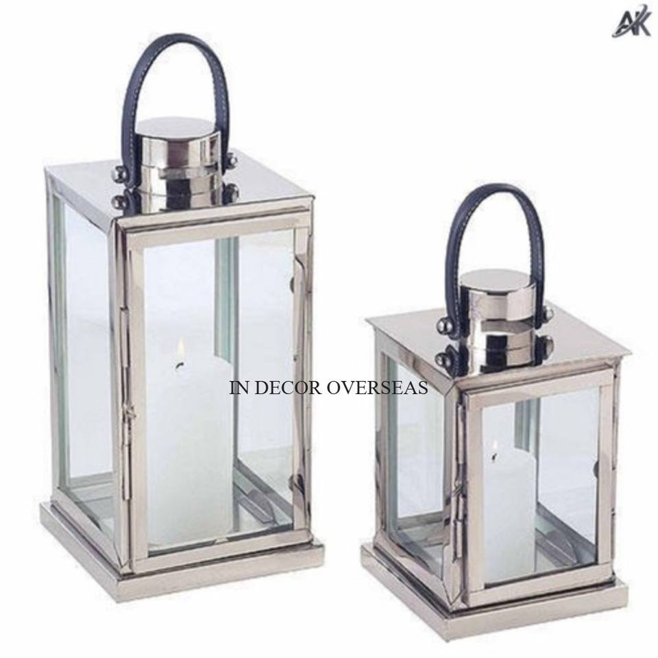 Ensemble de 4 bougeoirs design standard en métal plaqué or et verre clair, lanterne, centre de table, fournitures décoratives