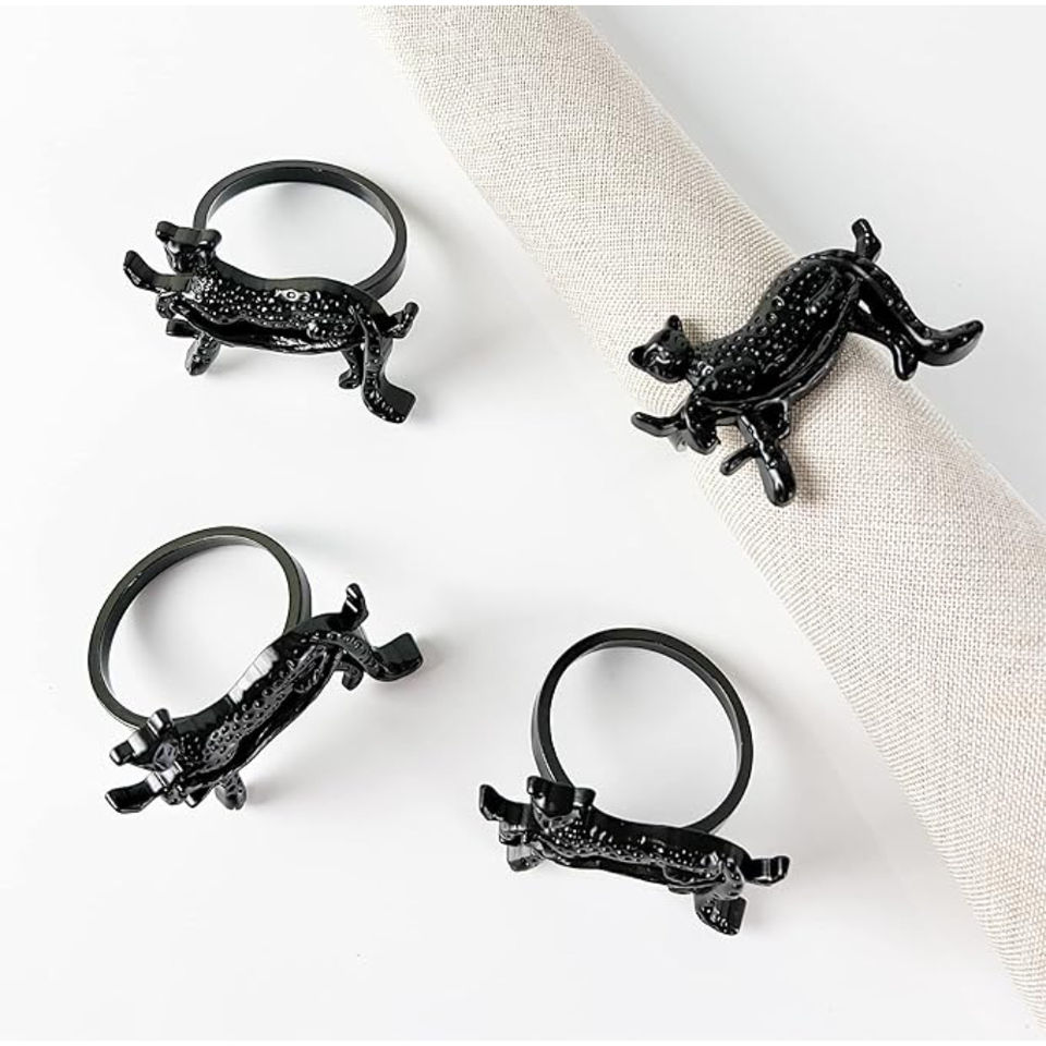 Ensemble de 4 ronds de serviette en métal léopard Design élégant pour table Design animal décoratif Rond de serviette Porte-mouchoirs au prix le plus bas