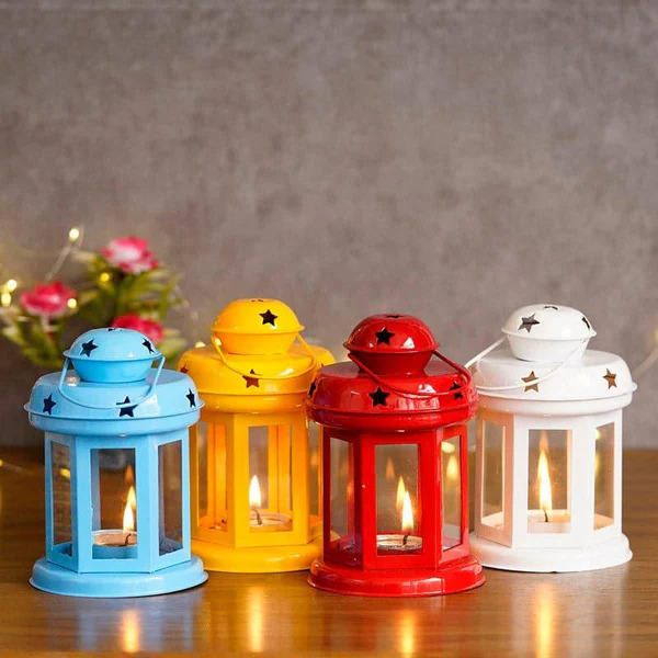 Lot de 4 mini lanternes artisanales au design unique pour éclairer votre espace Porte-bougie en verre moderne