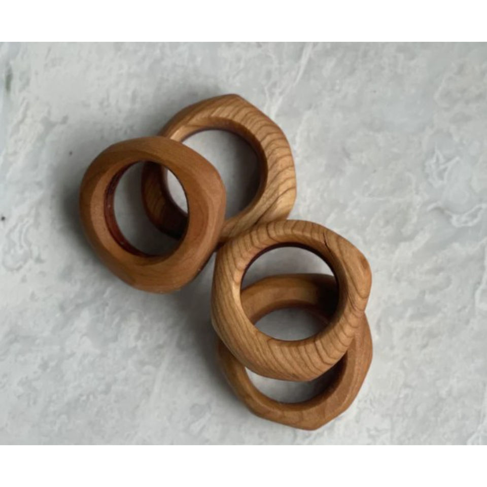Lot de 4 ronds de serviette et porte-serviettes en bois naturel de qualité de luxe pour la décoration de table de ferme et l'utilisation d'événements de mariage
