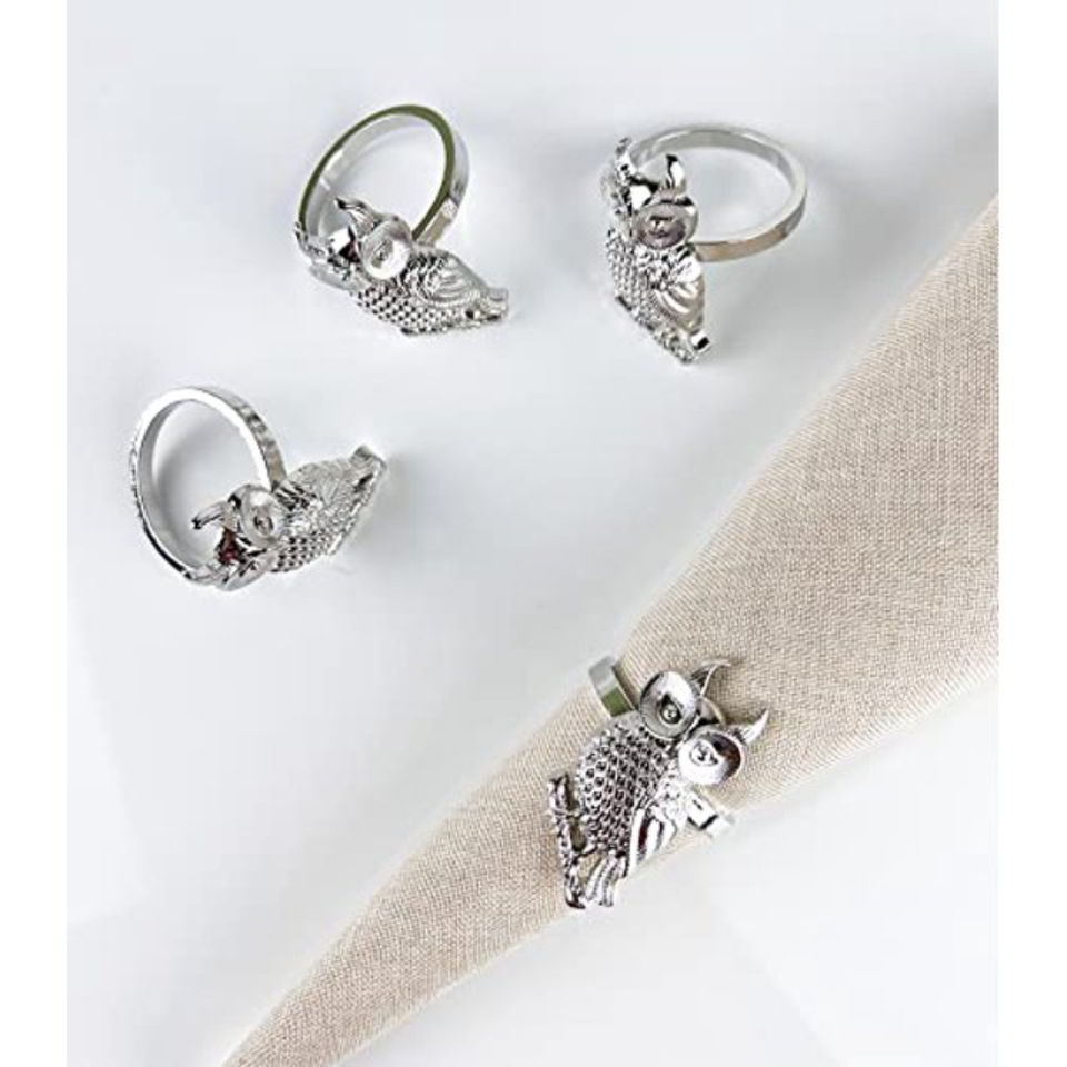 Set Of 4 Silver Animal Design Napkin Holders Vintage Owl Metal Napkin Rings Table Tissue Organizer For Hotel Restaurant Supplies