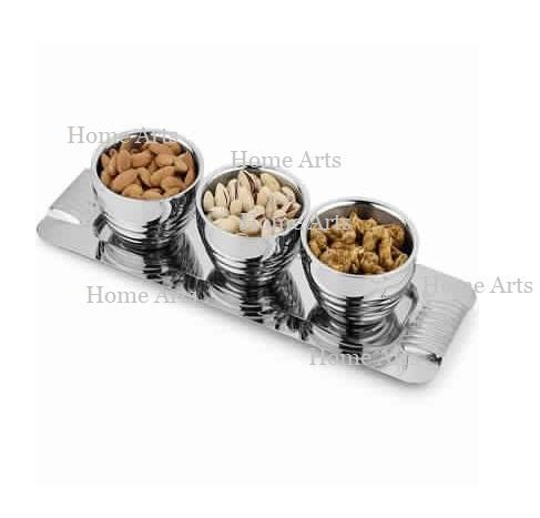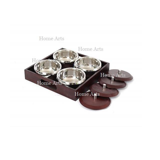 Ensemble de 4 bols à confiture en acier inoxydable avec couvercle en bois et plateau, serveur à noix de qualité supérieure, forme ronde