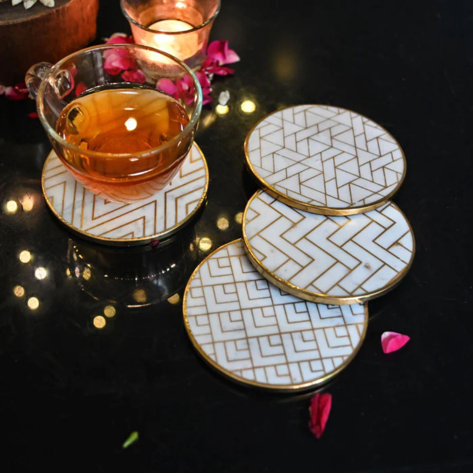 Ensemble de 4 sous-verres de table décoratifs en marbre Sous-verres de boissons à motif géométrique élégant pour les fournisseurs en gros
