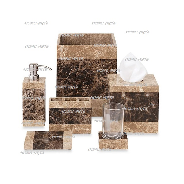 Lot de 6 ensembles de salle de bain de formes différentes en marbre Porte-pinceaux de qualité de luxe Porte-savon Poubelle Ensemble de salle de bain