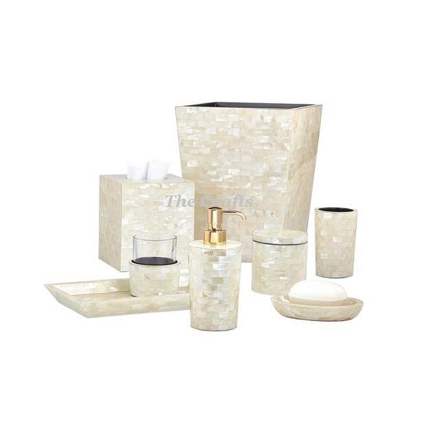 Ensemble de huit accessoires de salle de bain en métal couleur or, taille et forme personnalisées