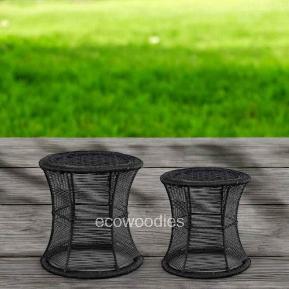 Ensemble de tabourets en corde d'osier naturel meubles de patio console incrustée d'os nouveau bambou élégant pour pouf ottoman tissé à la main polyvalent