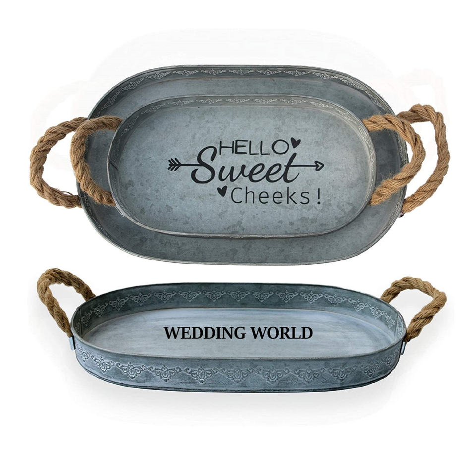 Ensemble de trois plateaux de service galvanisés de forme ovale, vaisselle de service faite à la main, plateau de service en métal de luxe design le plus vendu
