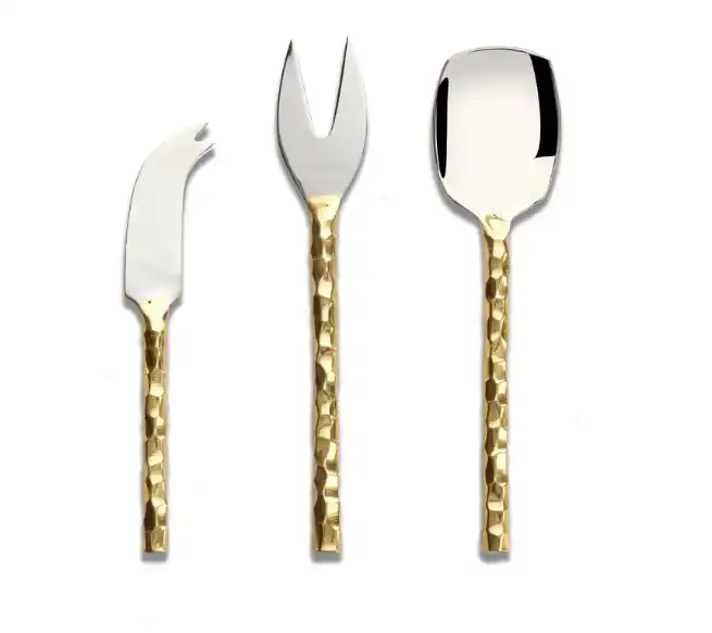 Ensemble de trois fromages élégants en métal avec poignées noires Dernier modèle de service de couverts en métal à des prix abordables