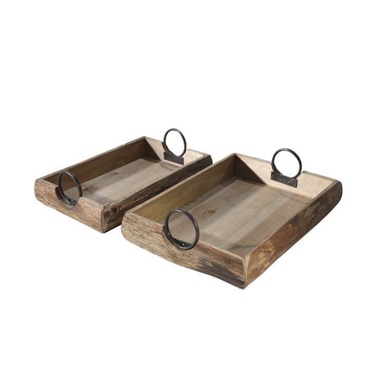 2025 Lot de deux plateaux en bois d'acacia avec poignée en métal Plateau de service en bois de qualité supérieure pour table et cuisine en vrac