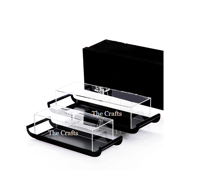 Ensemble de deux plateaux en fer de couleur noire avec couvercle en acrylique plateau de service de nourriture de la plus grande qualité pour accessoires de table