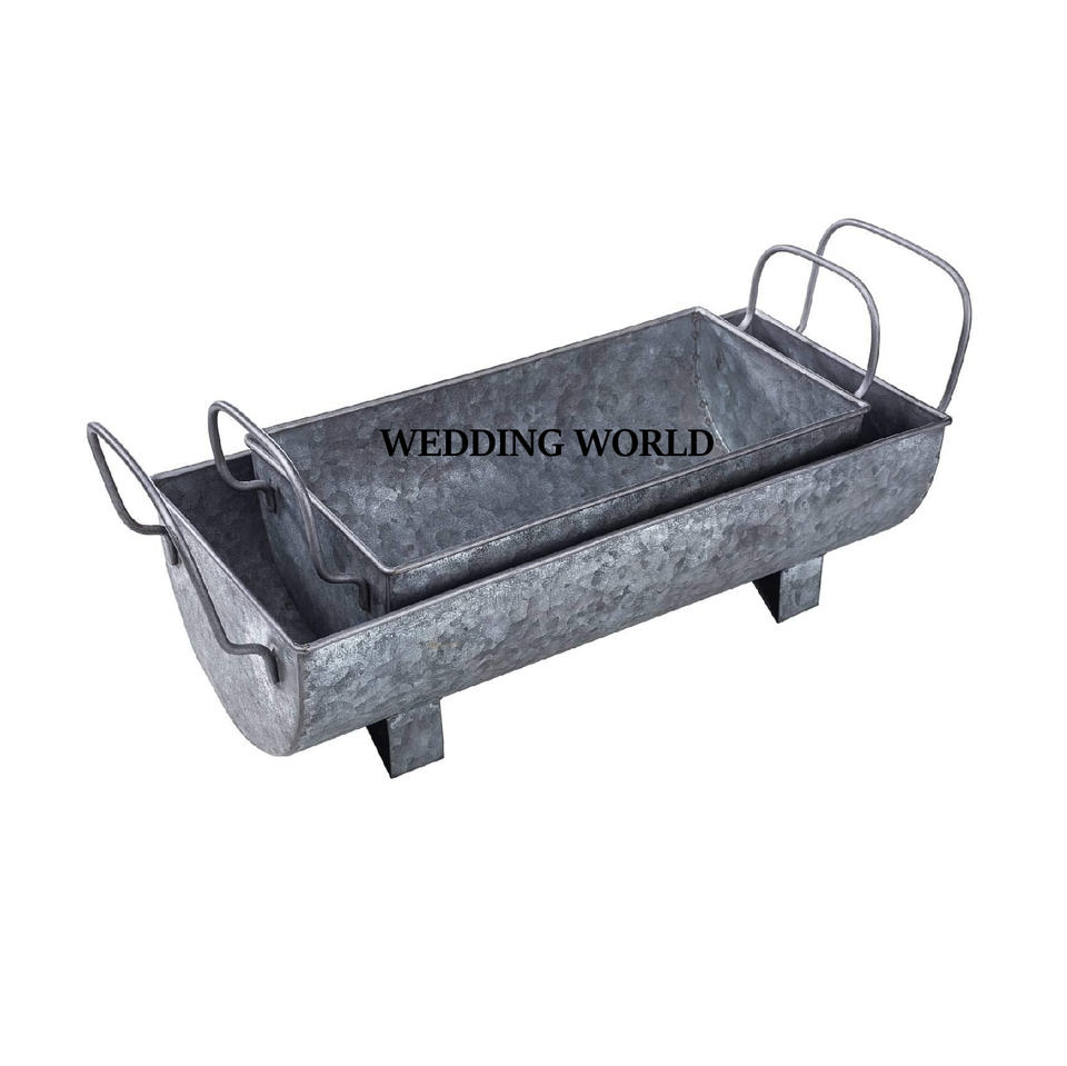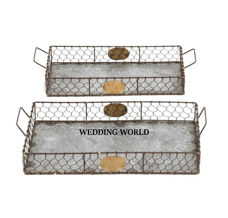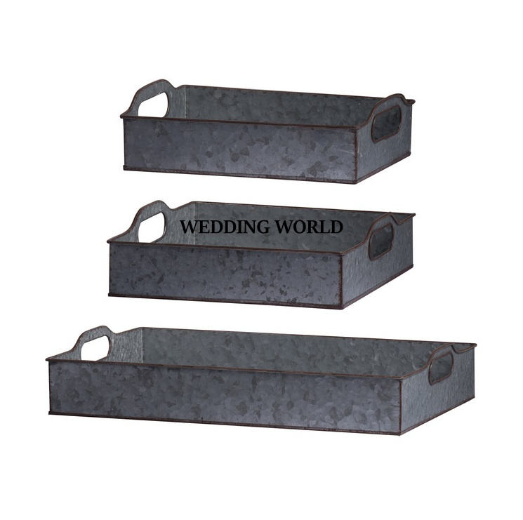 Ensemble de deux plateaux de service galvanisés faits à la main, vente à chaud de vaisselle de luxe en forme de rectangle, plateau de service en métal en gros de table