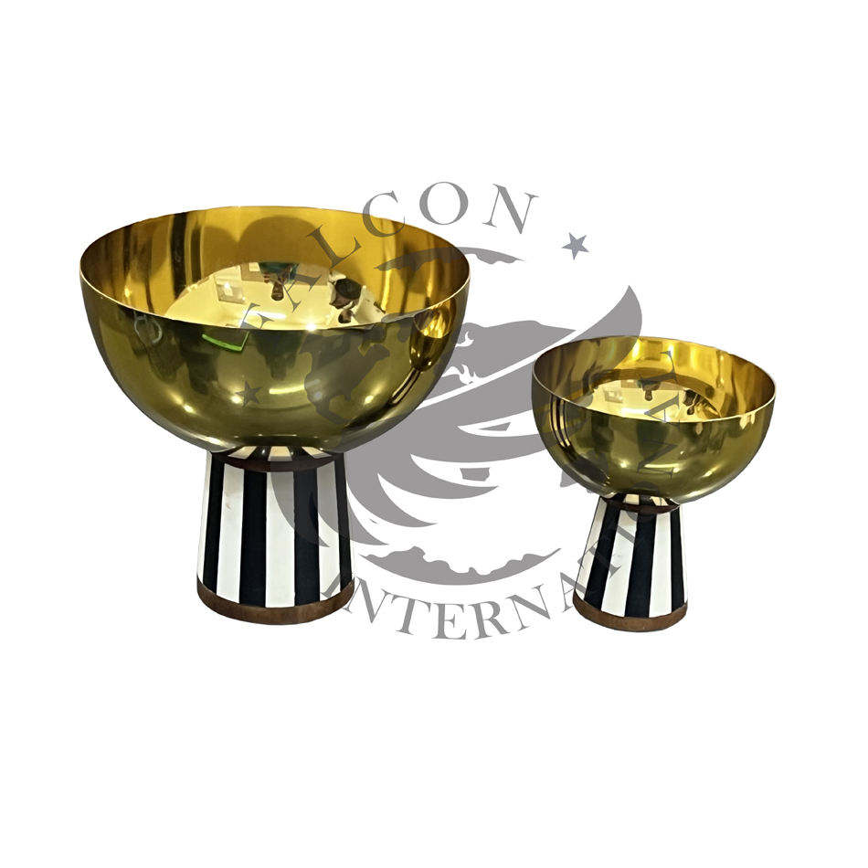 Set Of Two Gold Finished Chocolate Bowl With Wooden Base Round Shape Tabletop Sweet Bowl Latest Arrival Fancy Chocolate Bowl