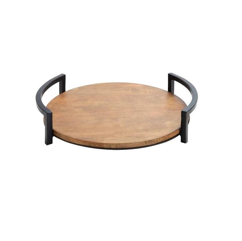 Ensemble de deux plateaux en bois avec poignée en fer noir moderne irrégulier Plateau de service en métal pour la décoration de table Taille personnalisée Forme Couleur
