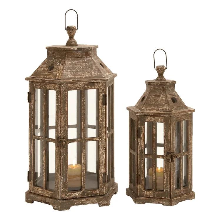 Ensemble de deux lanternes en bois de qualité supérieure faites à la main bougie maison Ware titulaire classique élégant en gros lanterne en bois