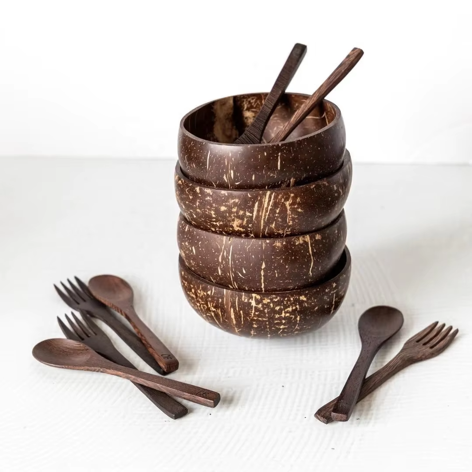 Set Polished Coconut Bowls:D5,5 x H2,6 inch