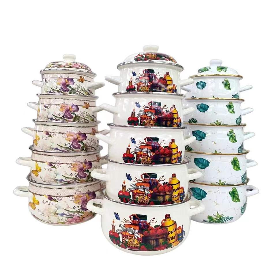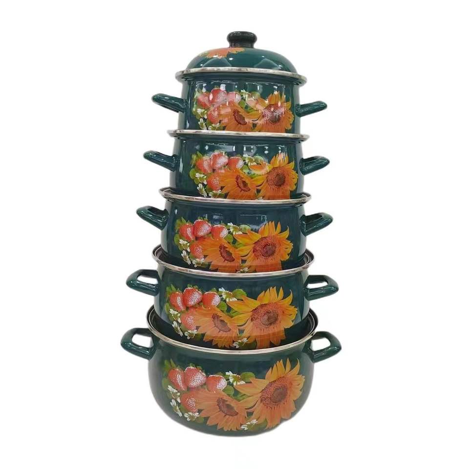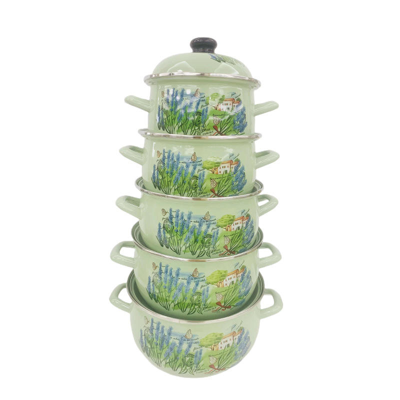Ensemble produit de qualité commerce extérieur cinq marmites en émail épaissi avec couvercle oreilles pot en émail ensemble 18 à 26 cm