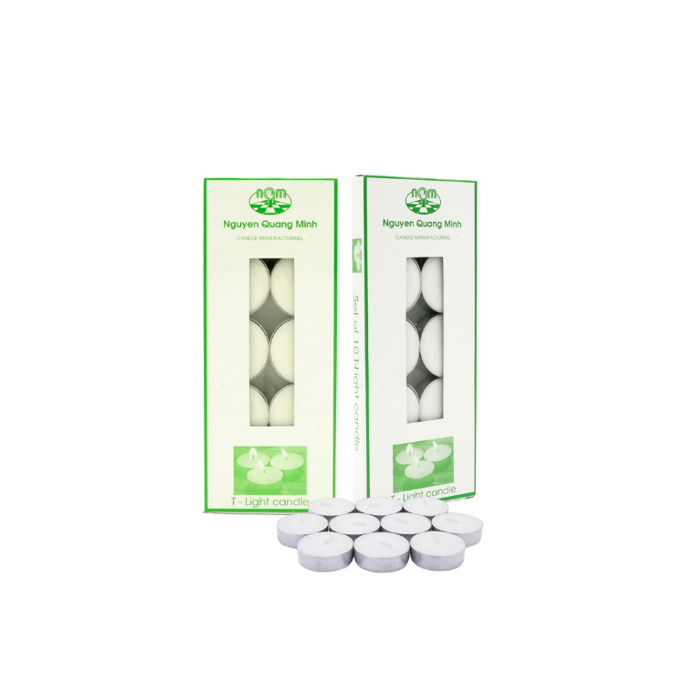 Packaging Description:10 Pressed Tealight Candles in Alu Cups / Packaged in Paper Boxes