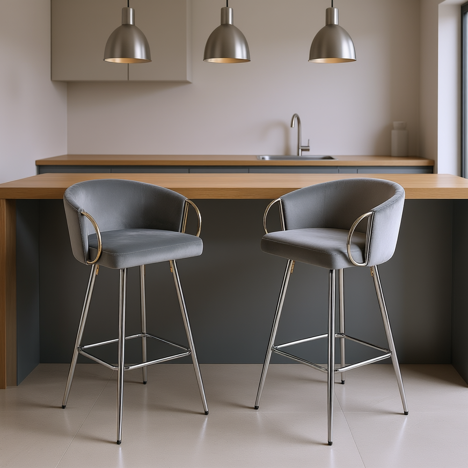 Tabourets de bar 30 pouces en velours gris avec structure en métal doré, design moderne, mobilier de bar pour la maison