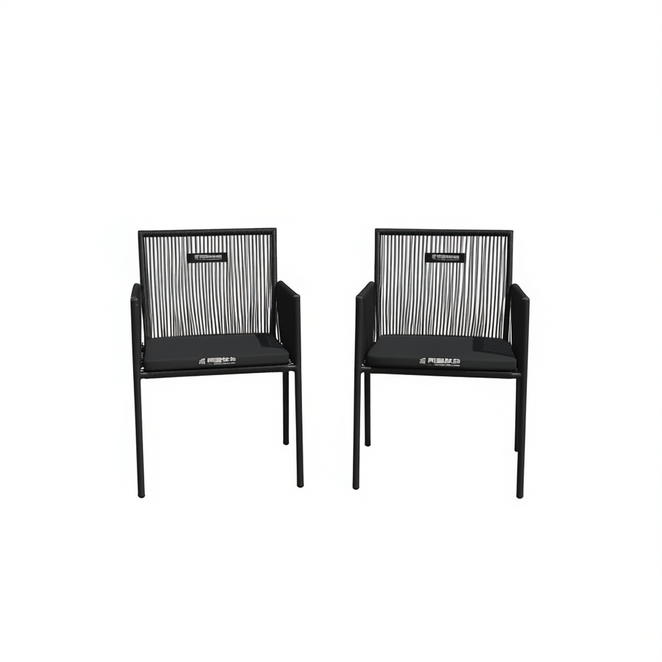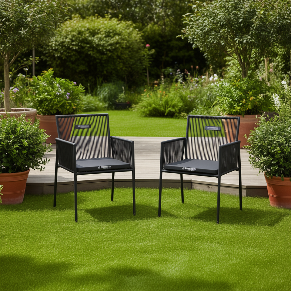 Ensemble de 2 chaises de jardin en rotin noir, sièges d'extérieur confortables au design contemporain