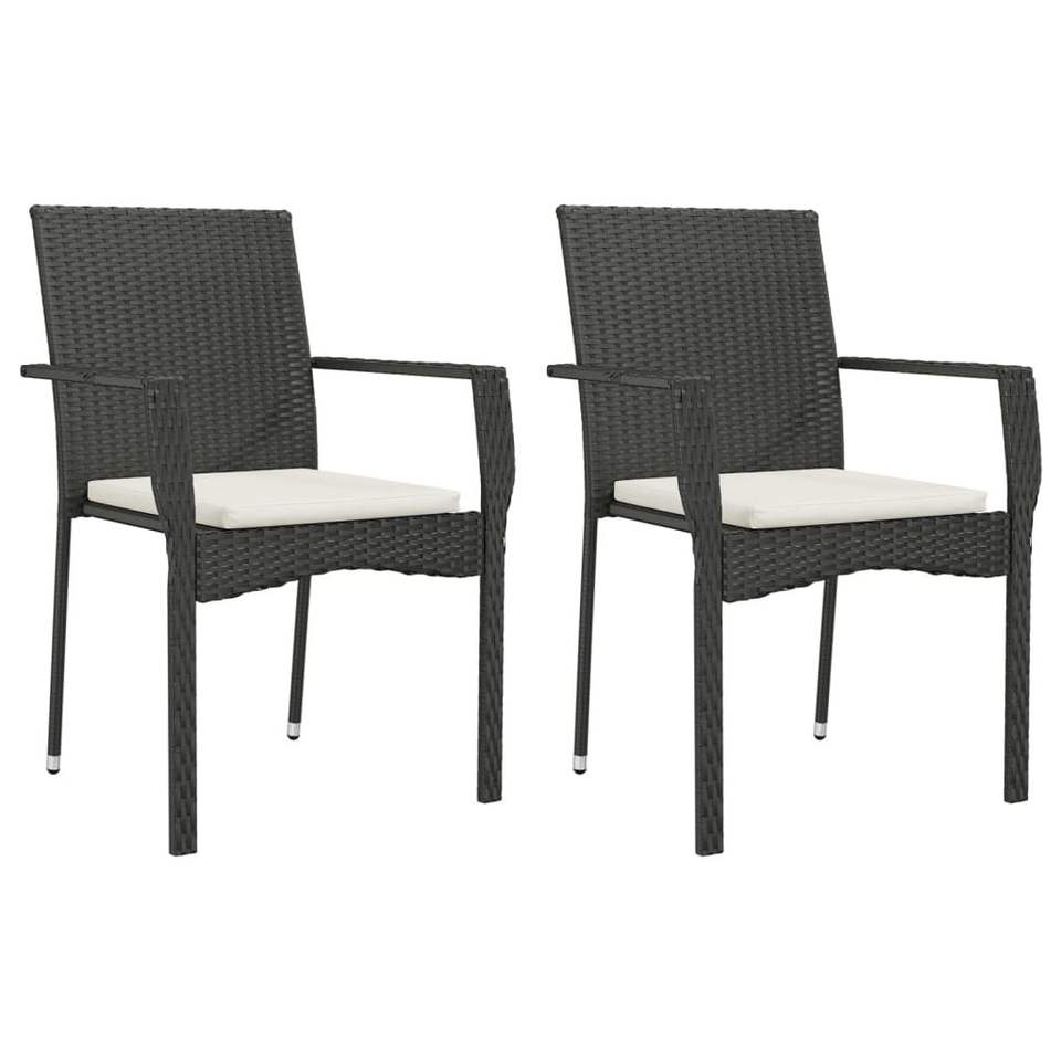 Ensemble de 2 chaises de jardin en polyrotin noir avec structure en acier thermolaqué, durables et élégantes