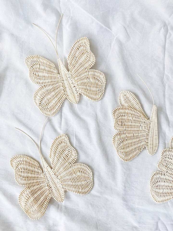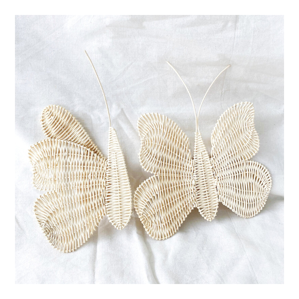 Lot de 2 décorations en rotin naturel en forme de papillon, décoration murale en osier pour chambre d'enfants, jouets en osier du Vietnam FBA Amazon