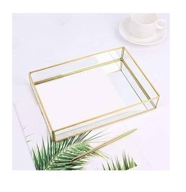 Ensemble de 2 plateaux de service carrés décoratifs, en métal et verre, créateur de Design Unique, plateau de service fait à la main