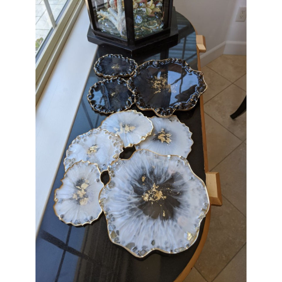 Ensemble de 2 sous-verre à thé en forme de fleur Tapis de table et sous-verre en acrylique transparent de grande qualité