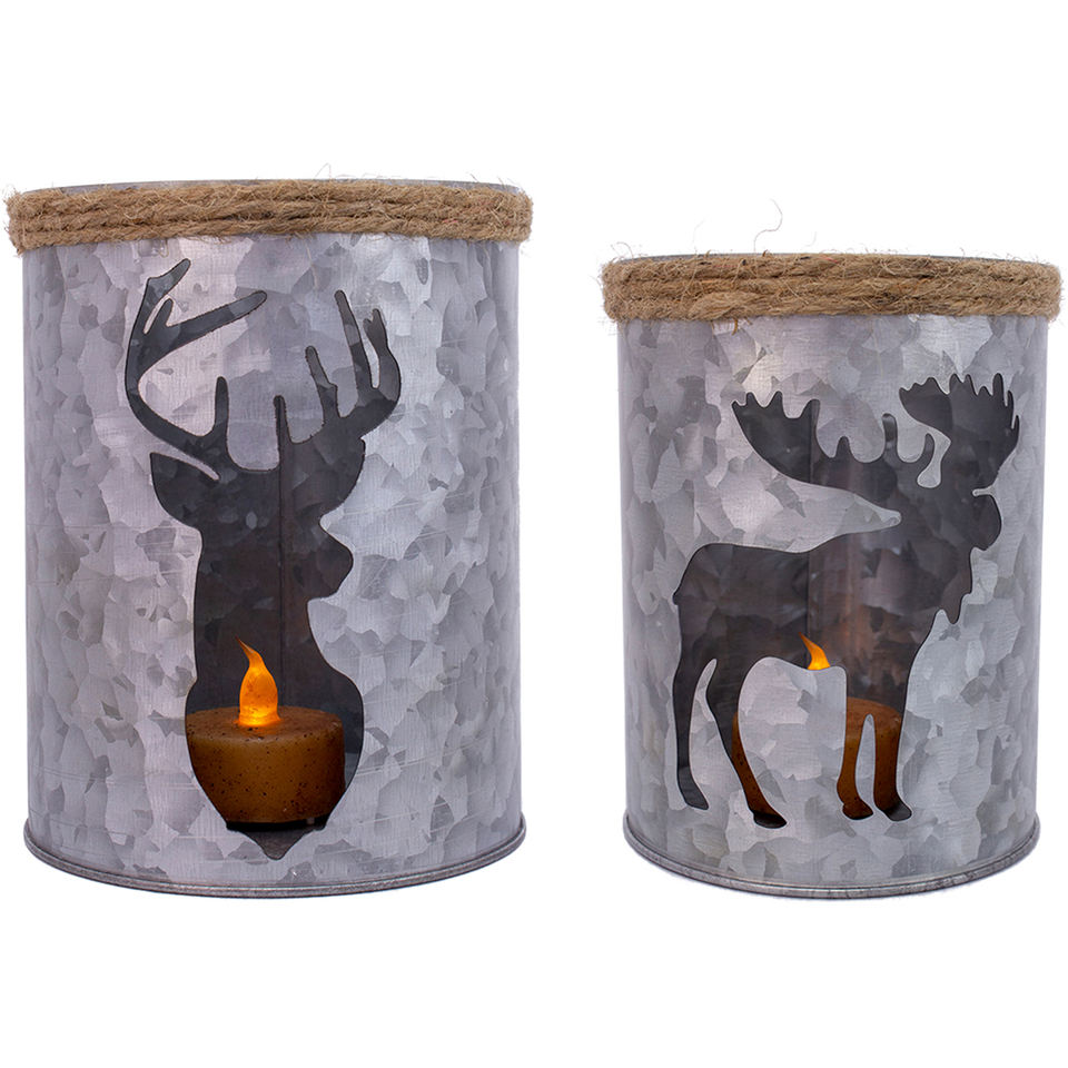Product name:Set of 2 Galvanized Deer Christmas Candle Holder