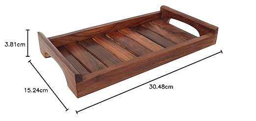 Set of 2 Handcrafted Wooden Serving Trays Multipurpose for Storage and Decoration Wood Tray Collection