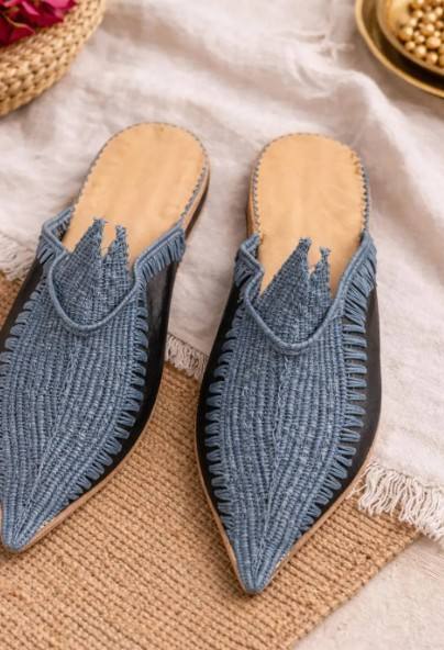 Ensemble de 2 babouches marocaines en raphia faites à la main – Sandales en raphia multicolores et bleues tissées à la main – Chaussures bohèmes