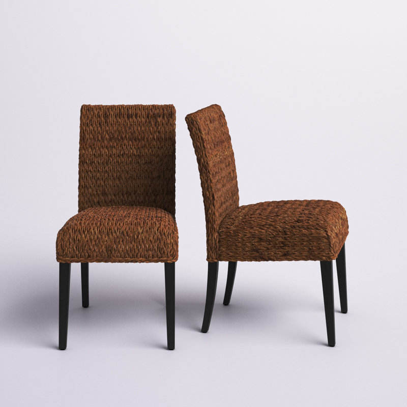Ensemble de 2 chaises de salle à manger en rotin tissé à la main au design d'assise unique