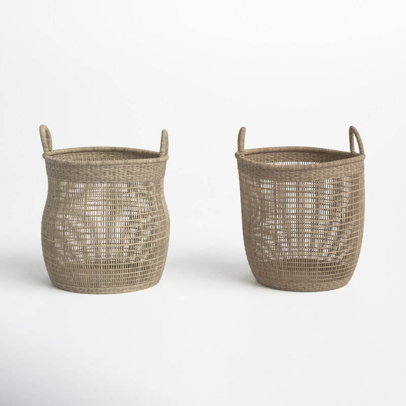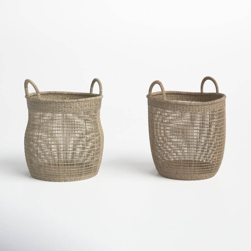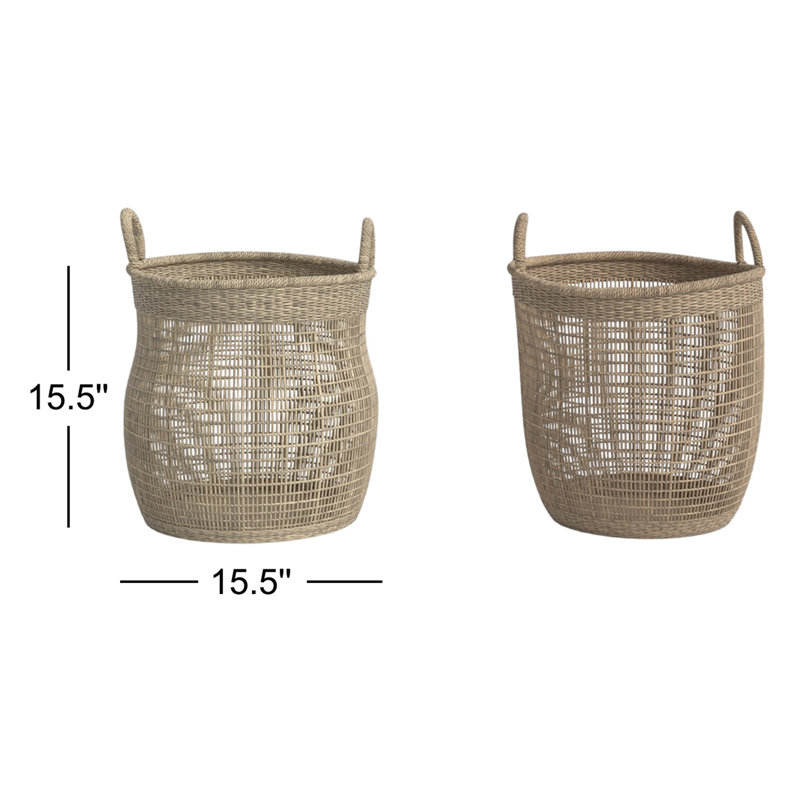 Set of 2 Handwoven Round Rattan Baskets Natural Woven Storage Solution