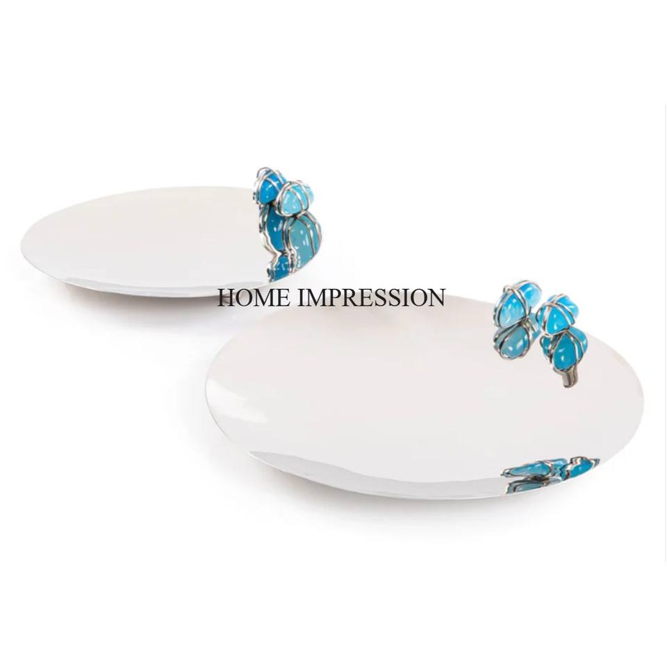 Lot de 2 plateaux de service en métal de haute qualité de couleur blanche enduits de poudre de forme ronde fournitures de restaurant et d'hôtel