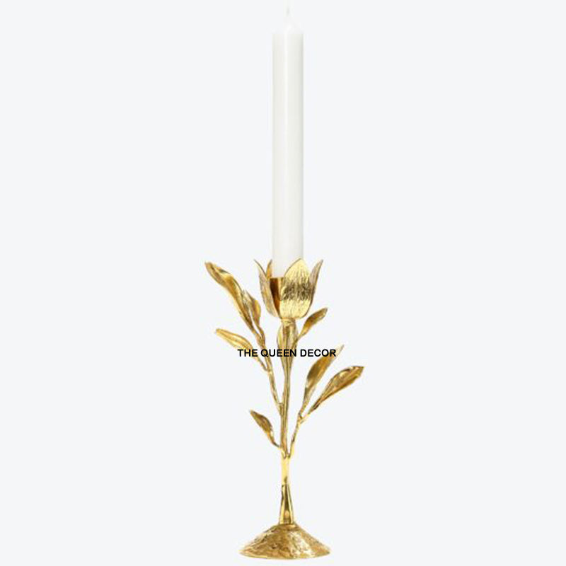 Lot de 2 bougeoirs décoratifs en aluminium doré, design arbre, pour la maison et le jardin