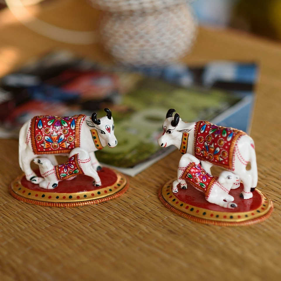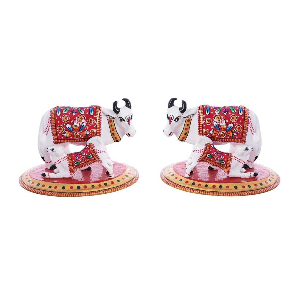 1 Set of 2 Meenakari Cow And Calf FigurinePackage Content