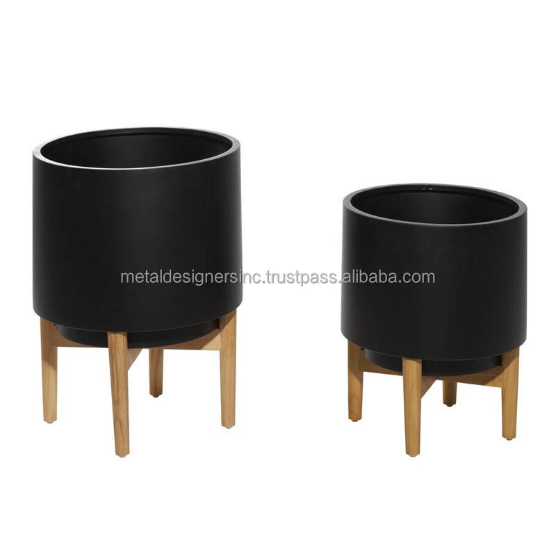 Lot de 2 pelles noires en métal avec support en bois naturel