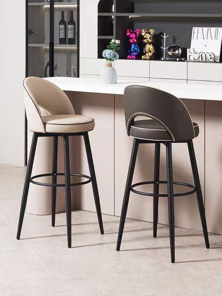 Lot de 2 tabourets de bar modernes de 24 pouces à hauteur de comptoir et pieds en bois massif et dos en velours pour les repas en plein air, les îlots de cuisine et les hôtels