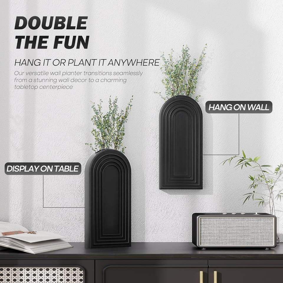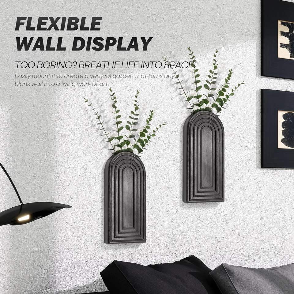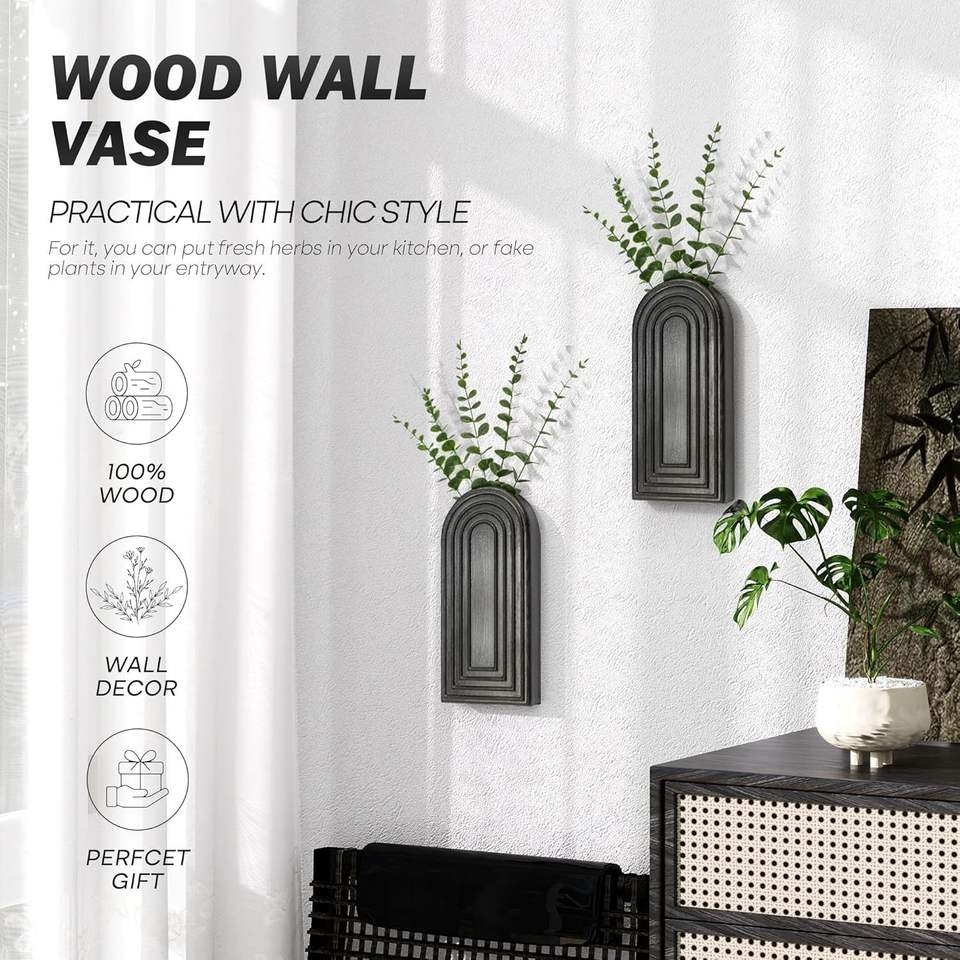 Ensemble de 2 vases muraux en bois de pin rustique moderne, décoration bohème pour la maison, jardinières intelligentes pour plantes d'intérieur, décoration murale suspendue C