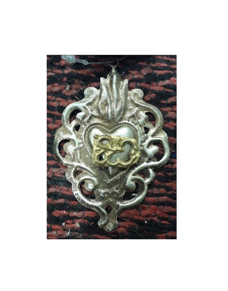 Ensemble de 2 Pcs cœur sacré en métal doré antique sur support cœur sacré en strass