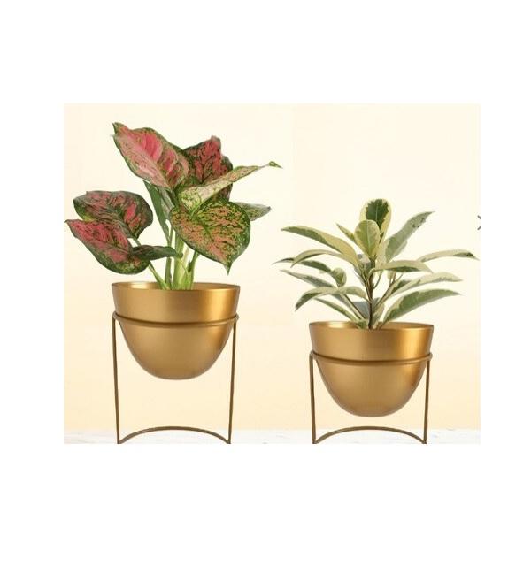 Ensemble de 2 jardinières en métal doré avec support amovible en métal pour la décoration intérieure et extérieure du salon, du balcon, jardinière en métal