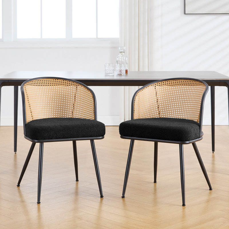 Lot de 2 chaises de salle à manger rembourrées à dossier en rotin pour restaurant